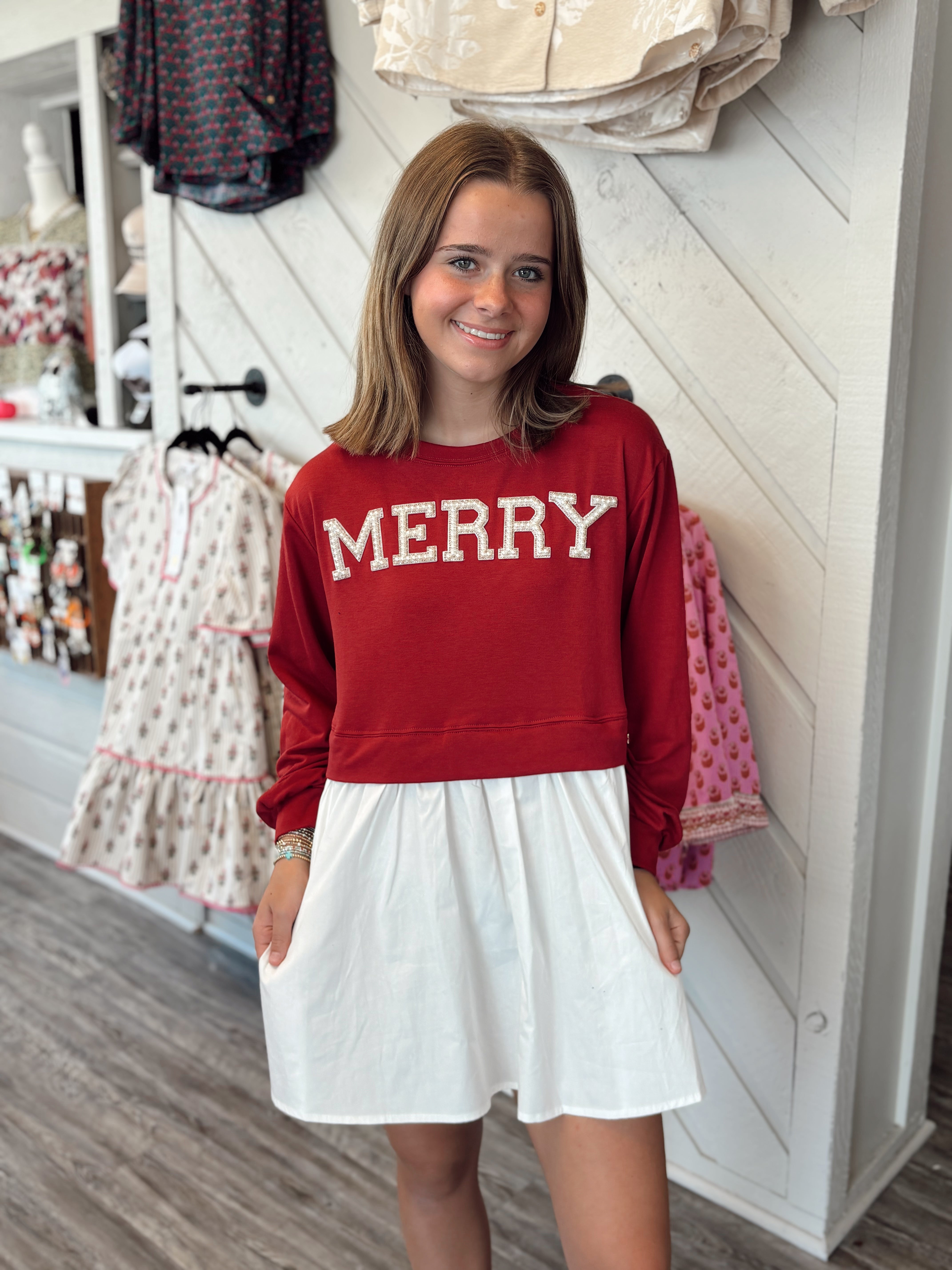 Show up in style this season with this adorable Twyla dress. It features crew neck, sweatshirt upper and pleated skirt bottom, and Simply Southern gold tone logo plate. Made of 100% polyester top and 100% cotton skirt.