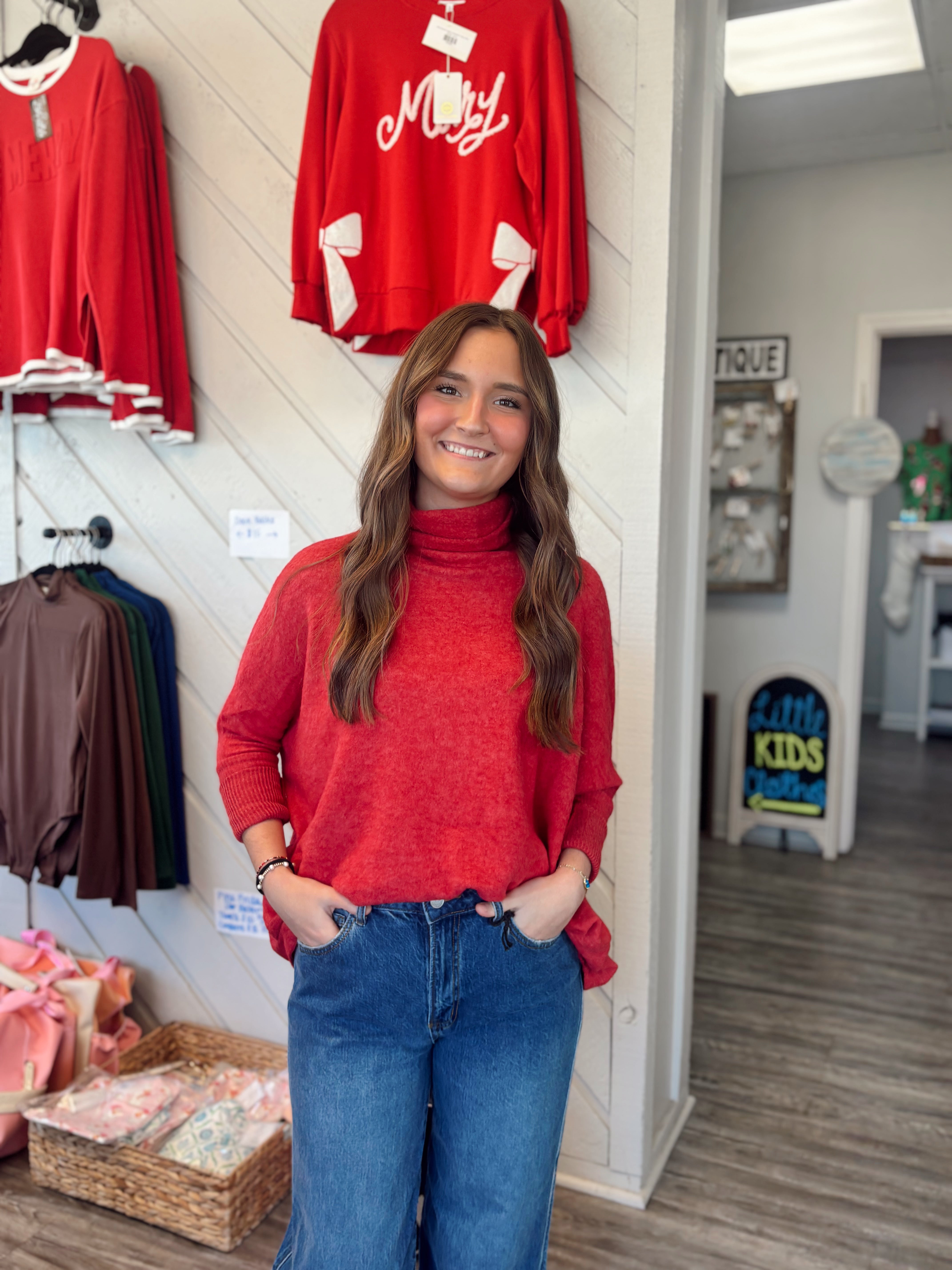 DOOR BUSTER Cozy Luxe Brushed Turtleneck Sweater – Red