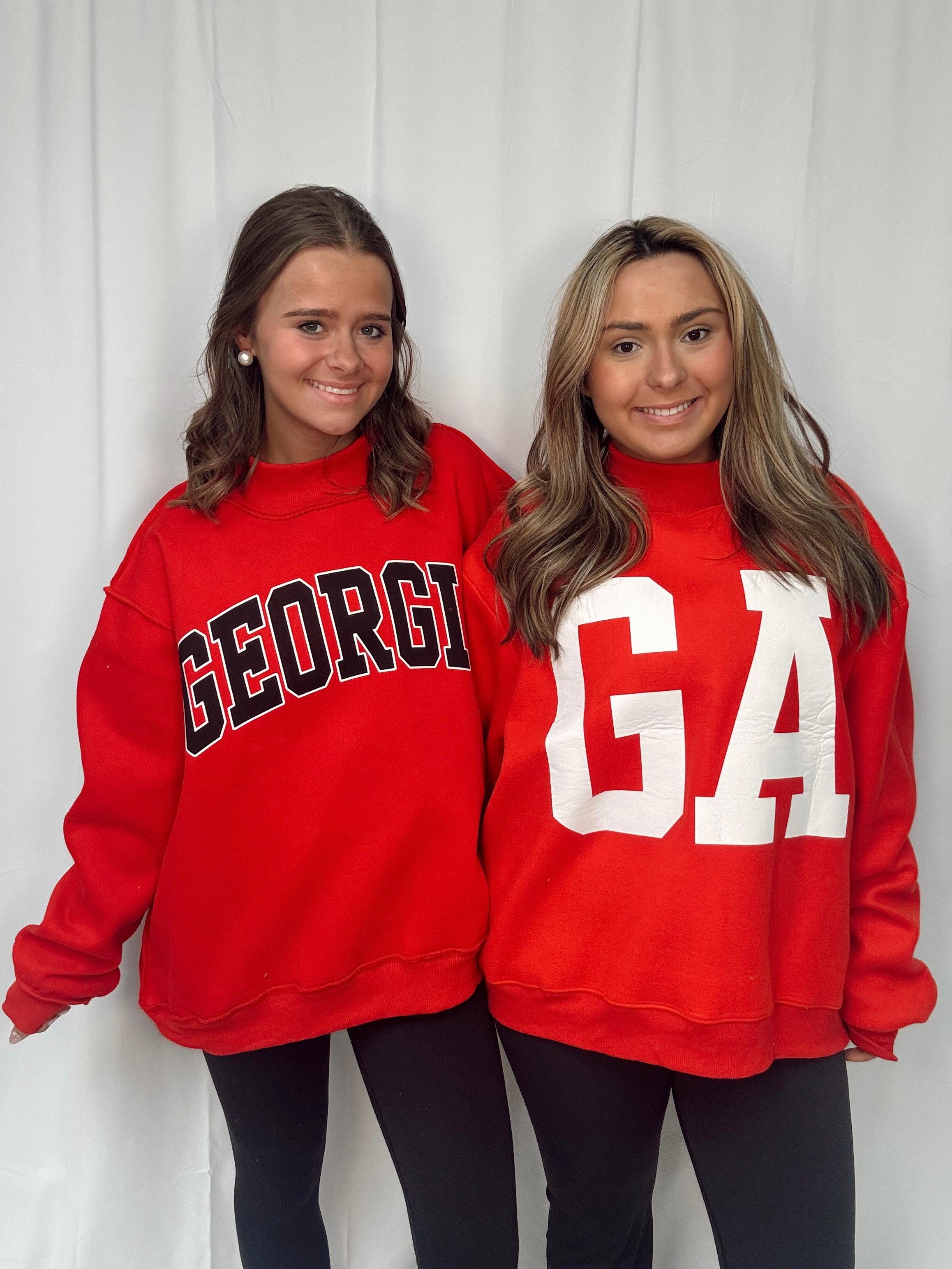 Rep your state in style with this cozy reversible sweatshirt featuring bold collegiate lettering on both sides — “GEORGIA” on one, “GA” on the other. Designed with a soft, brushed fleece interior, mock neckline, and relaxed drop-shoulder fit, it’s perfect for game days, errands, or lounging in comfort. The ribbed cuffs and hemline add a classic touch, while the reversible design gives you two looks in one!