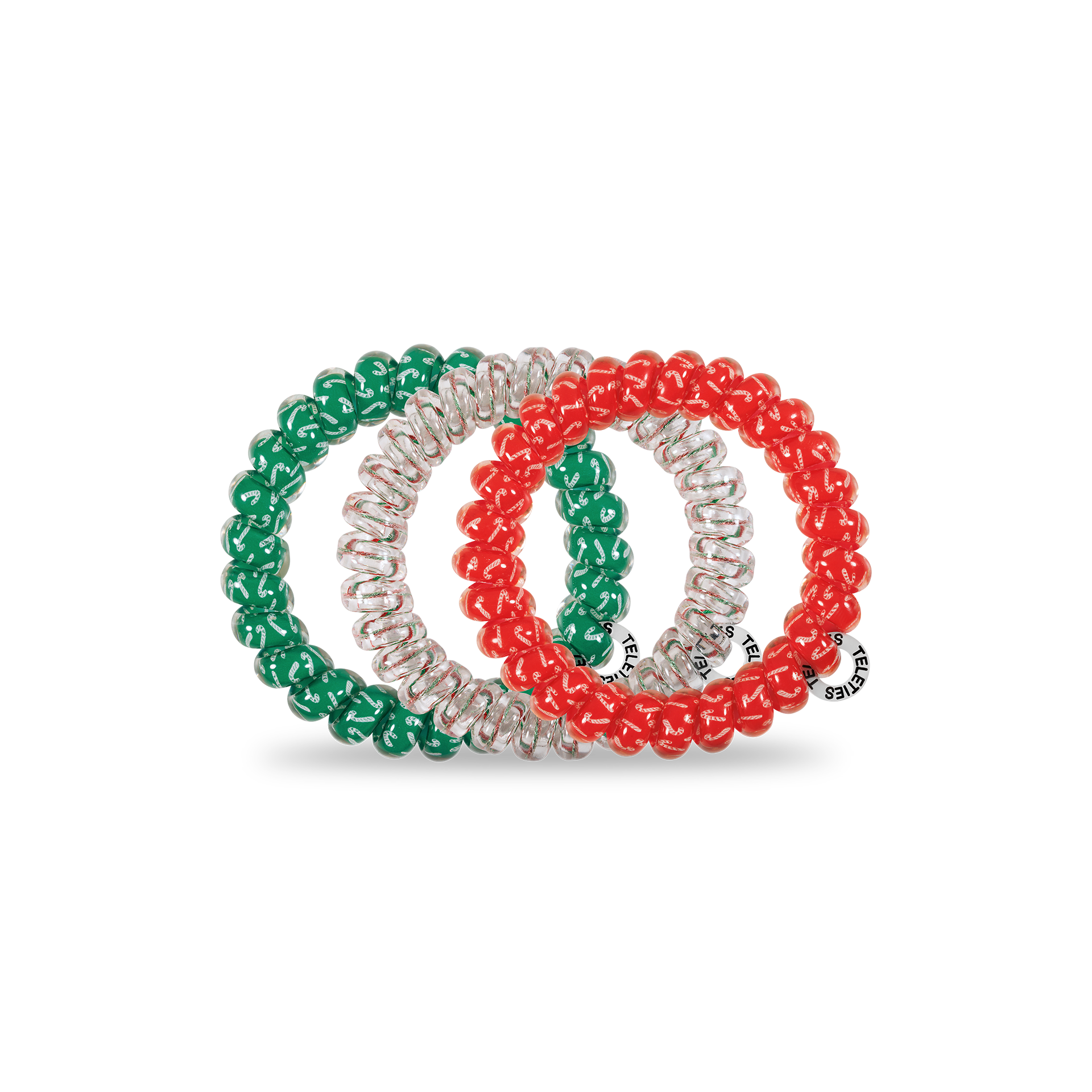 Celebrate Christmas with the perfect stocking stuffer and holiday accessory! Elevate your hair game and style with TELETIES – the hair tie that offers a strong grip without breakage and doubles as a trendy bracelet. Durable, chic, and practical, TELETIES are crafted to handle everyday wear while adding a stylish touch to your look. The ultimate holiday accessory for both your hair and wrist! Sold in packs of three. The large size is 6.5cm wide x 1cm thick.