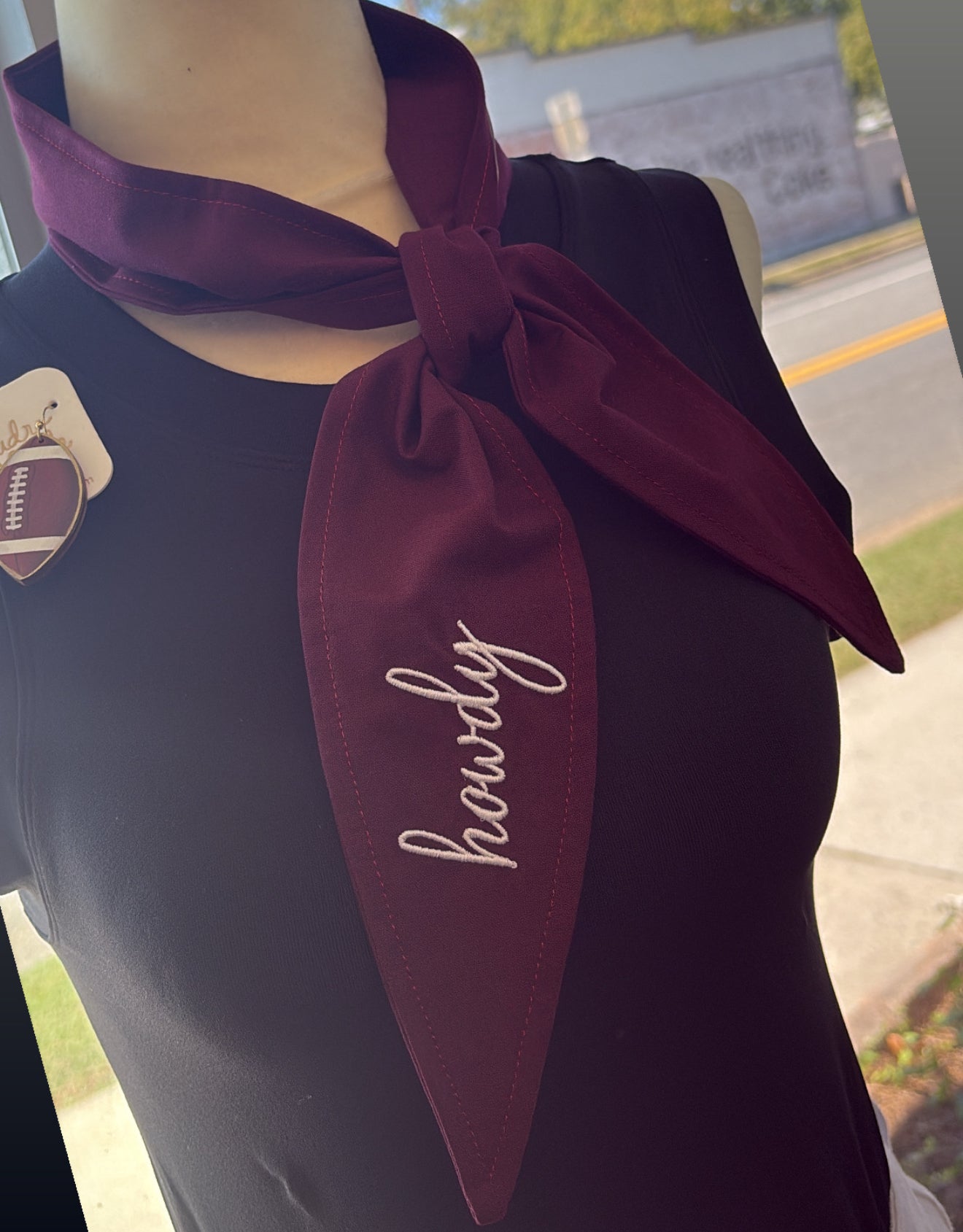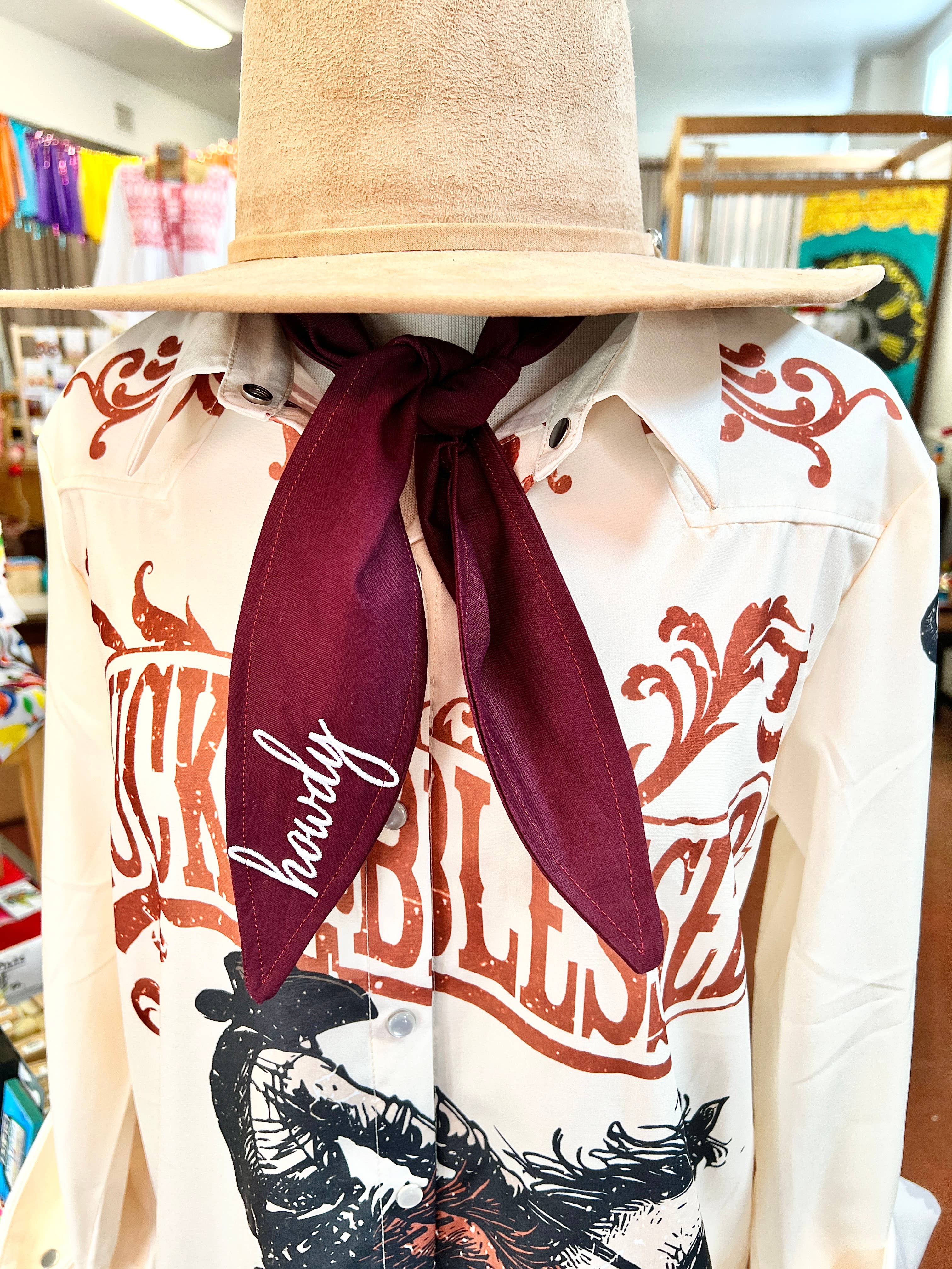 Get game day ready and show your spirit in style with this howdy ascot scarf - a must-have accessory for fans who love to stand out with flair!