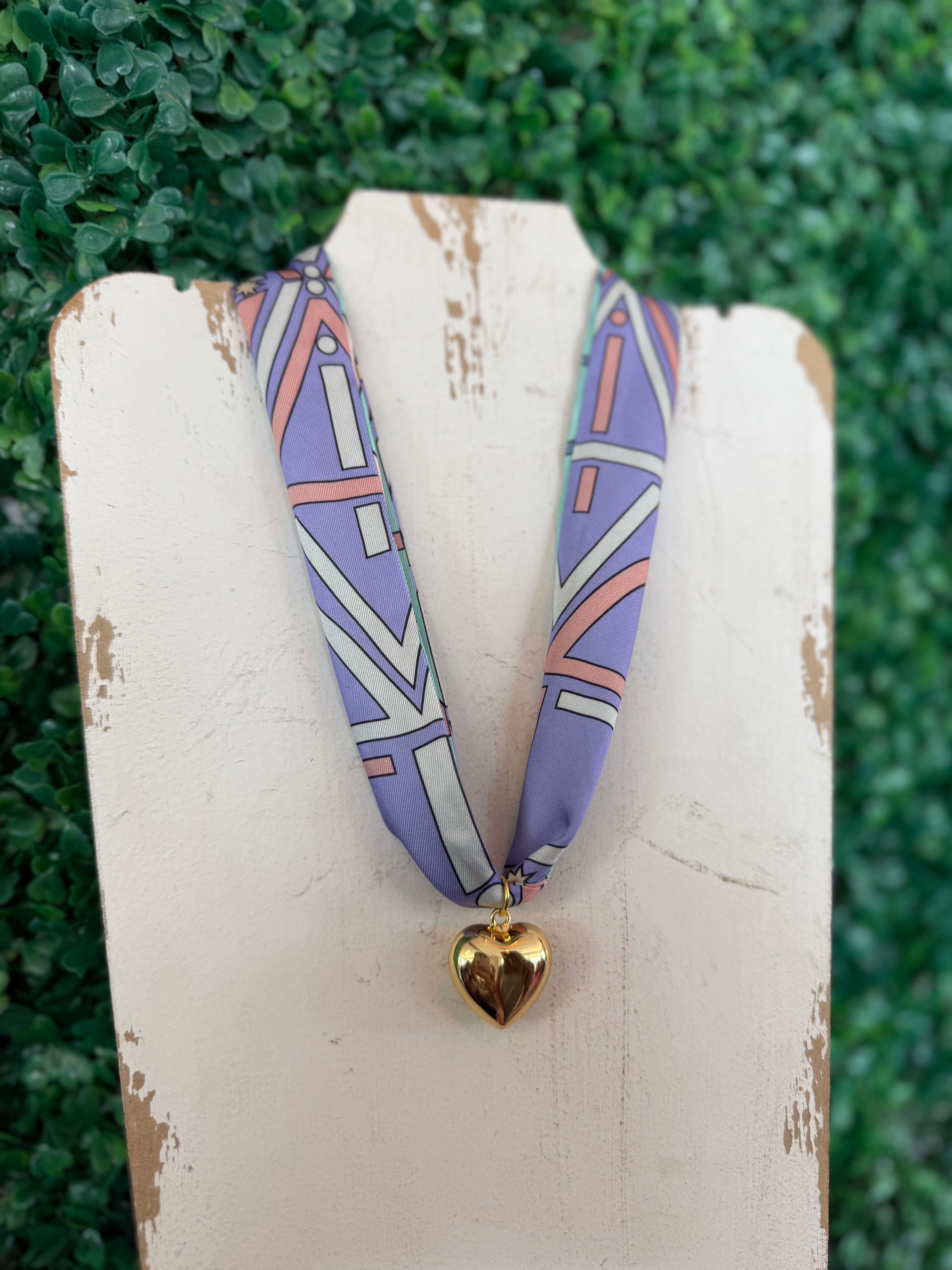 Soft meets striking in the Lavender Luxe Scarf Necklace. Featuring a geometric lavender scarf with pastel accents and a high-shine gold heart charm, this beauty blends vintage glam with modern cool. It’s a dreamy finishing touch for any outfit that needs a little love.