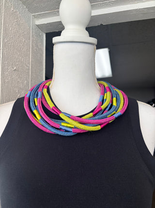 Cream/Natural Knotted Scarf Necklace with Puffy Heart,Open Cross, and Bow Charm