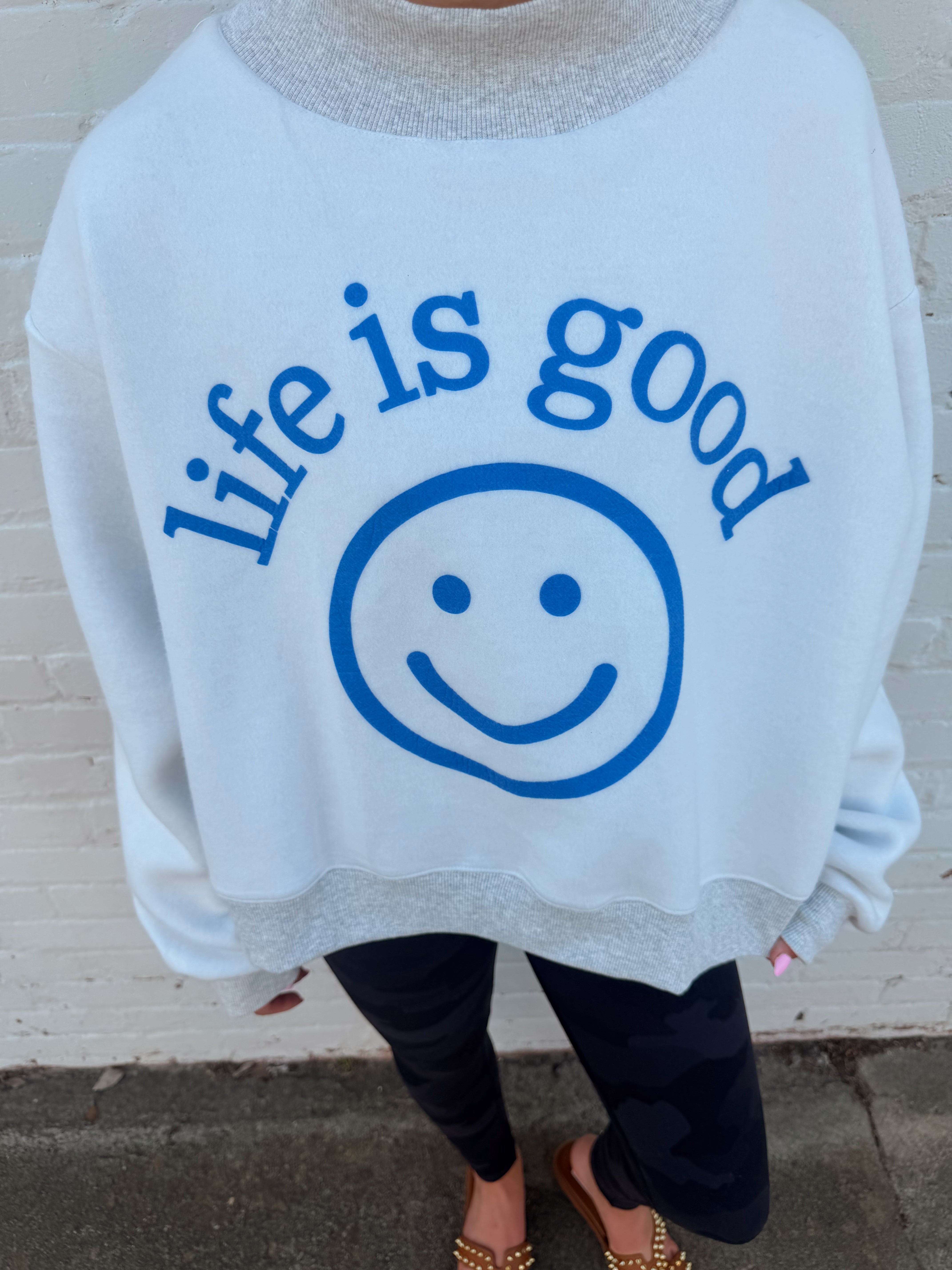 • “Life Is Good” smiley graphic on reverse side
