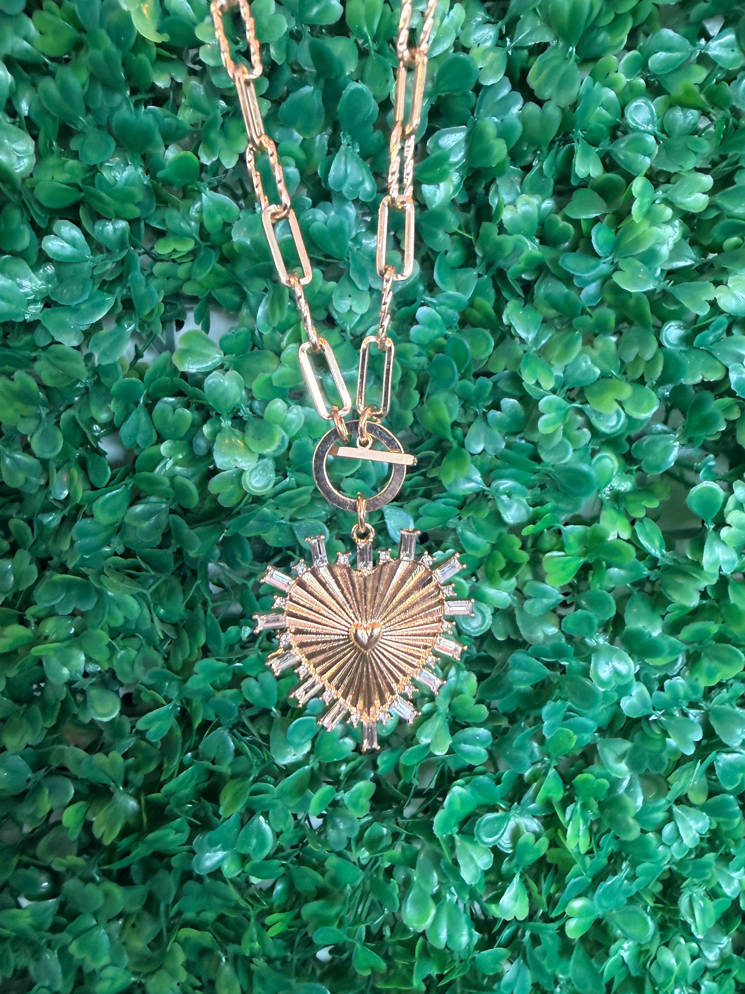 Introducing our Gold Chain Necklace with a Rhinestone Studded Heart Charm from What's Hot. This piece adds a touch of sparkle with its rhinestone-studded heart charm, while the gold chain ensures durability. It's adjustable from 16"-18", ensuring a perfect fit for everyone.