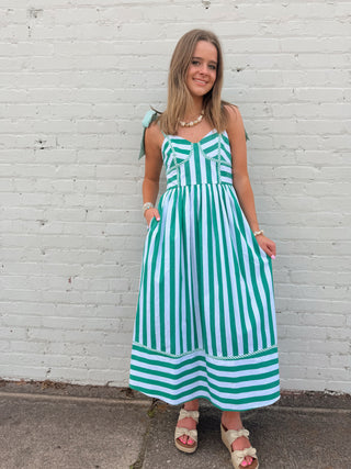 Lucky Stripe Bow-Shoulder Midi Dress