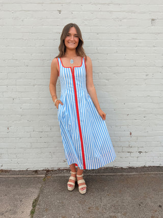 Seaside Stripe Contrast Trim Midi Dress