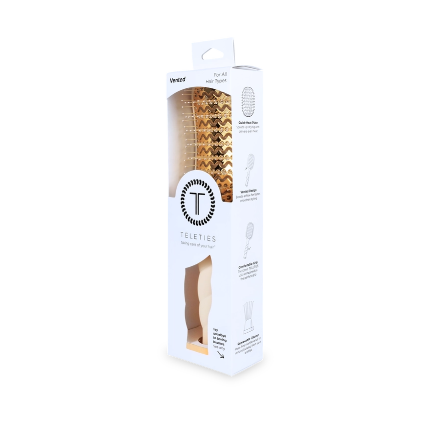 The Vented Brush in Tan is your new secret to faster, smoother blowouts. Pairing a Quick-Heat Aluminum Plate that heats up in seconds and distributes heat evenly with a vented design to enhance air flow, this vent brush works perfectly with your blow dryer to cut down on styling time without cutting corners on results. Vented Brush Features You’ll Love: ✔ Quick-Heat Plate — Fast drying, even heat distribution ✔ Vented Design — Boosts airflow for smoother styling ✔ Comfortable Grip — Iconic coil handle, ergonomic and elegant ✔ Removable Cleaner — Easy cleanup for everyday freshness ✔ Anti Static Bristles